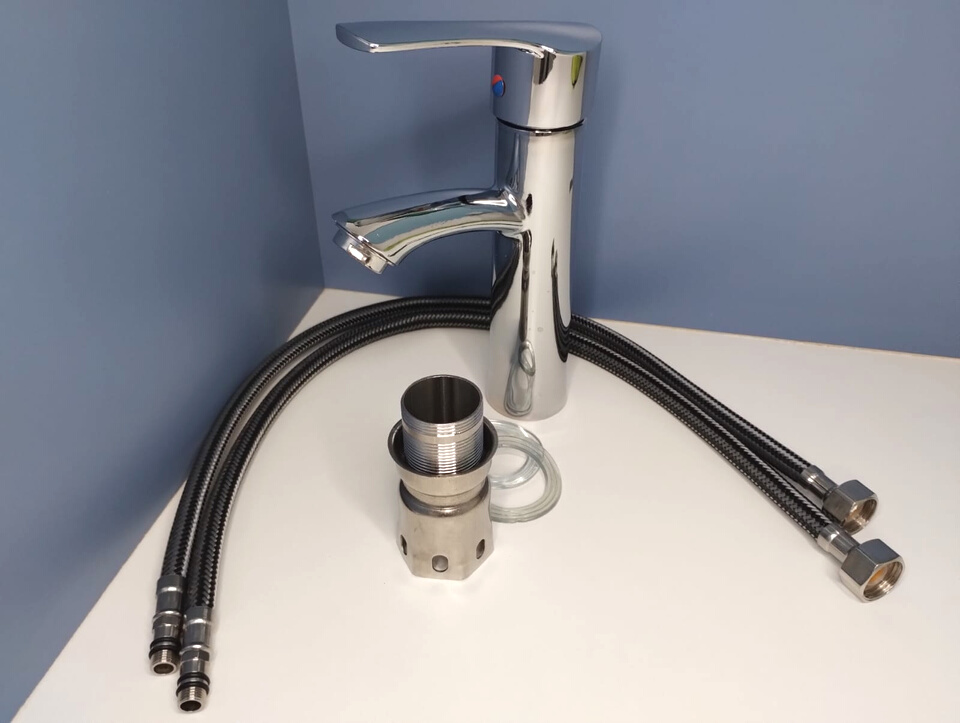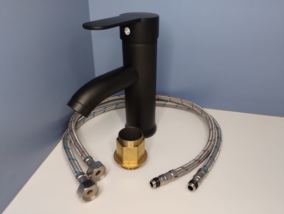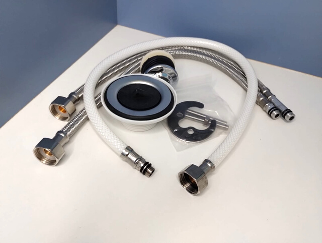 - Incluye flexibles de acero inoxidable y kit para fijación